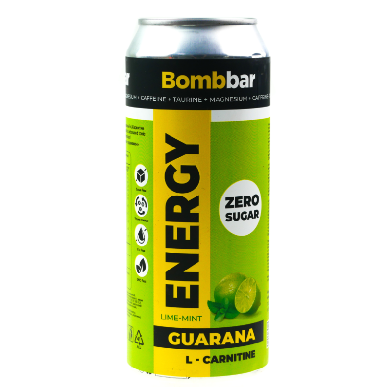 BOMBBAR, Energy Drink, GUARANA L-CARNITINE, Lime Mint, 500 ml