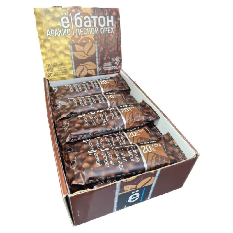 Ё|БАТОН, Протеиновый батончик 20% белка, Шоколад-Лесной орех, 40 г, 20 штук