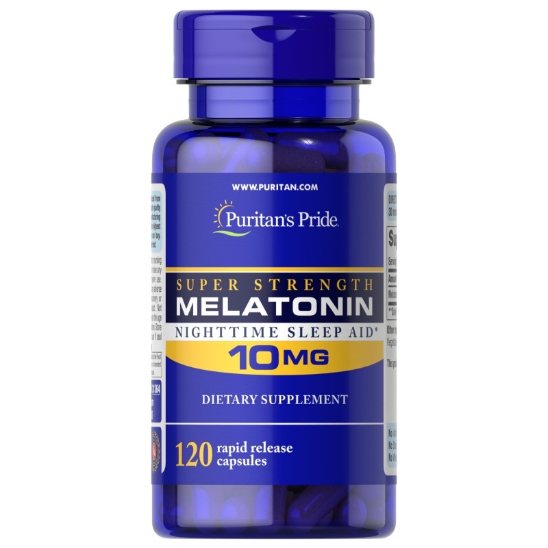 Puritan's Pride® Super Strength Мелатонин для ночного сна 10 мг содержит: 120 капсул быстрого высвобождения. Мелатонин - это гормон, который естественным образом вырабатывается в организме. Мелатонин тесно связан с естественным циклом сна. Поскольку неэффективный сон может повлиять на вашу энергию и настроение, мелатонин - отличный выбор, если вы время от времени испытываете бессонницу или смену часовых поясов, или если вы хотите улучшить качество отдыха. Мелатонин помогает вам быстрее засыпать и дольше спать. При приеме перед сном мелатонин может поддерживать кровяное давление, которое уже находится в пределах нормы. Влияние мелатонина на кровяное давление может помочь поддерживать спокойный сон и расслабленное настроение.