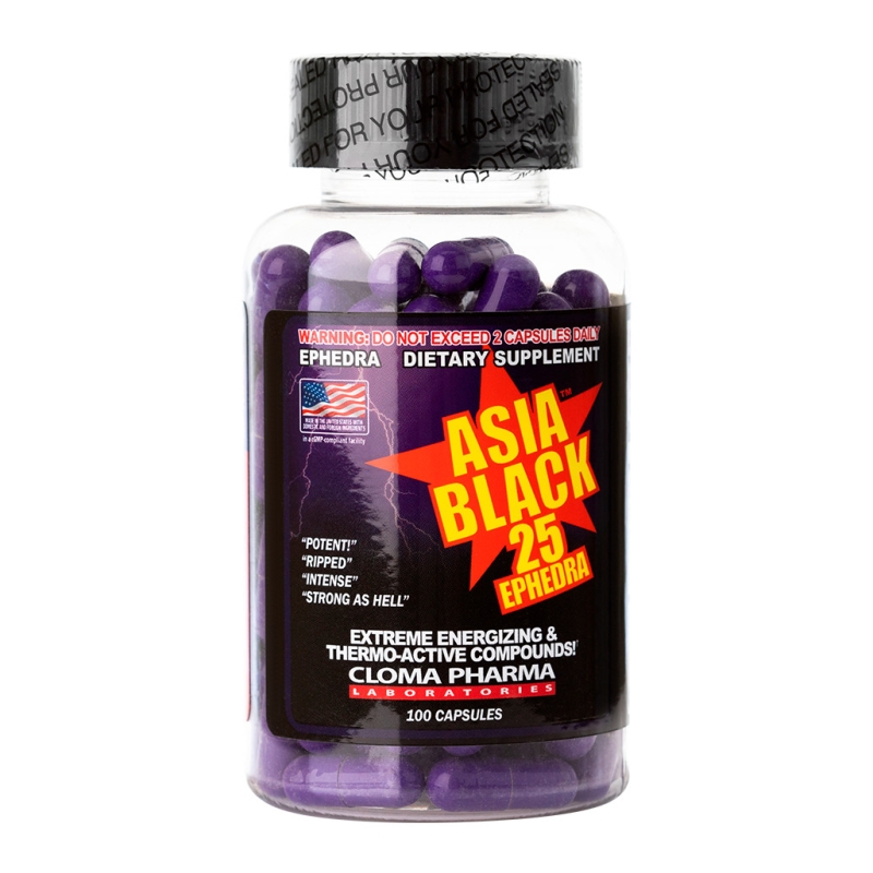 Asia Black от Cloma Pharma - это мощный жиросжигатель, который не только поможет сжечь лишний жир, но и повысит уровень энергии и выносливости на тренировке, чтобы вы могли оставаться сосредоточенными для достижения поставленных целей. Часто сжигание жира перерастает в настоящую борьбу, особенно если речь идет о последних несколько лишних килограммов. Именно тогда, когда уже не помогает диета и независимо от интенсивности тренировок нет существенного прогресса - вам поможет Asia Black. Компоненты добавки подобраны таким образом, чтобы помочь сжигать жир когда организм привык и адаптировался к физическим нагрузкам и ваш вес стала на месте. Наше тело не любит меняться и особенно трудно удается потерять вес тем, кто имеет генетическую предрасположенность к полноте. Asia Black - это спортивная добавка, компоненты которой помогают создать идеальные условия для ускорения обмена веществ, сжигание жира и калорий на каждой тренировке. Благодаря продуманной формуле все компоненты Asia Black дополняют и усиливают эффективность друг друга и делает добавку одним из самых мощных жиросжигателей на рынке спортивного питания. Азия Блэк 25 Эфедра поможет не только потерять лишний вес, но и повысит энергетический уровень, для большей эффективности тренировок.