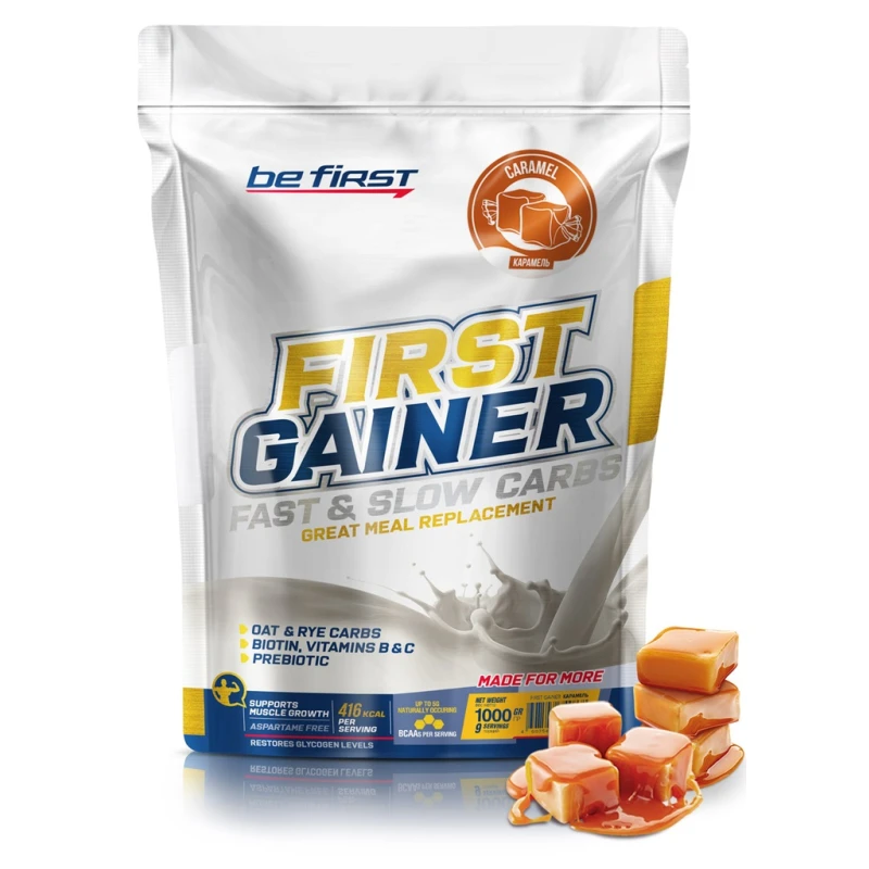 Be first, First Gainer Fast & Slow Carbs, Caramel, 1000 gr