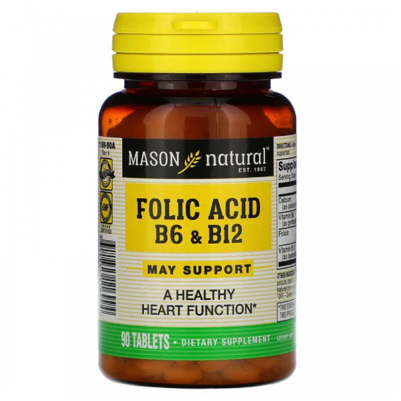 Mason Natural, Folic Fcid B6 & B12, 90 tablets
