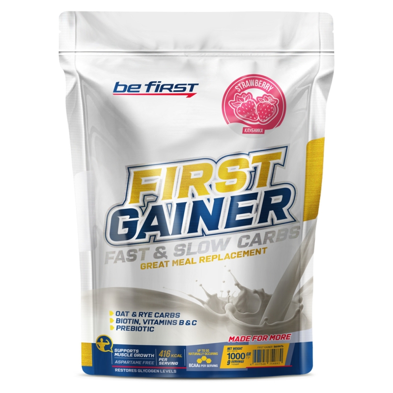 Исходя из указанных рекомендаций можно заметить, что First Gainer позволяет решить задачу поступления в организм дополнительных белков, углеводов, жиров и, соответственно, калорий. Количество жиров в составе продукта незначительно, что должно учитываться при составлении общего рациона.