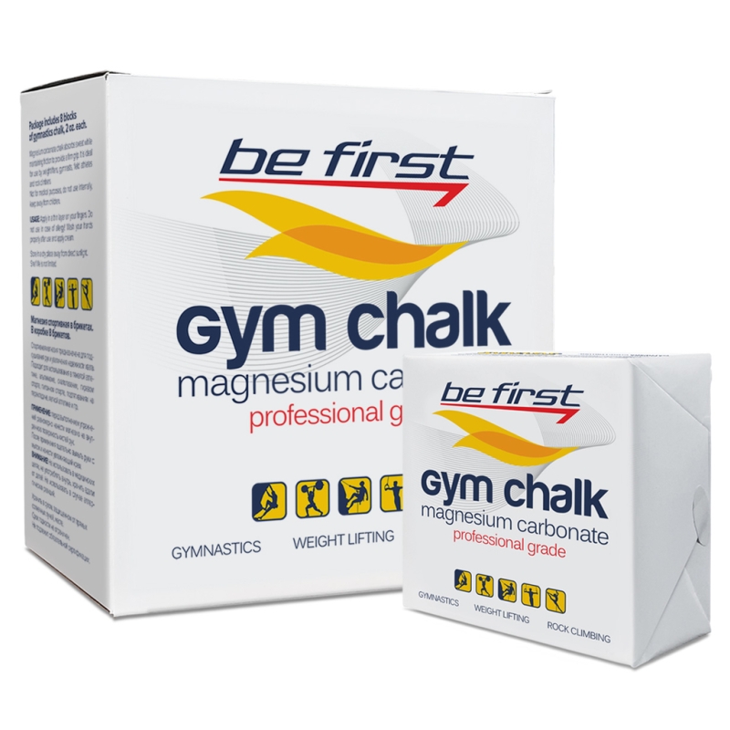Спортивная магнезия Be First – это белый порошок, состоящий в основном из карбоната магния и предназначенный для подсушивания рук, а также улучшения их сцепления со снарядом при занятиях гимнастикой, тяжелой атлетикой, спортивным альпинизмом и другими видами спорта. Магнезия несколько снижает потоотделение в области ладоней и впитывает пот, увеличивая трение, за счет чего намного снижается вероятность проскальзывания ладоней на грифе или перекладине. Таким образом уменьшается вероятность получить травму, а также исключается необходимость тратить лишние усилия и внимание на удержание снаряда в руках – и, следовательно, повышается эффективность тренировок.