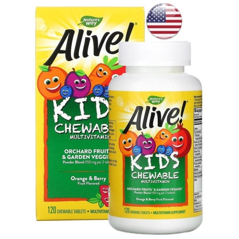 Nature's Way, Alive! KIDS CHEWABLE MULTIVITAMIN, Orange and Berry, 120 chewable tablets